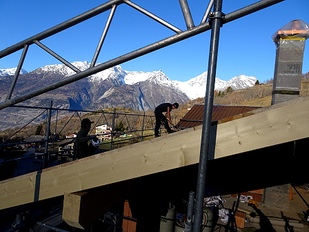 arbeiten auf dem dach!trotz grossem fortschritt gibt es viel zu tun.das dach